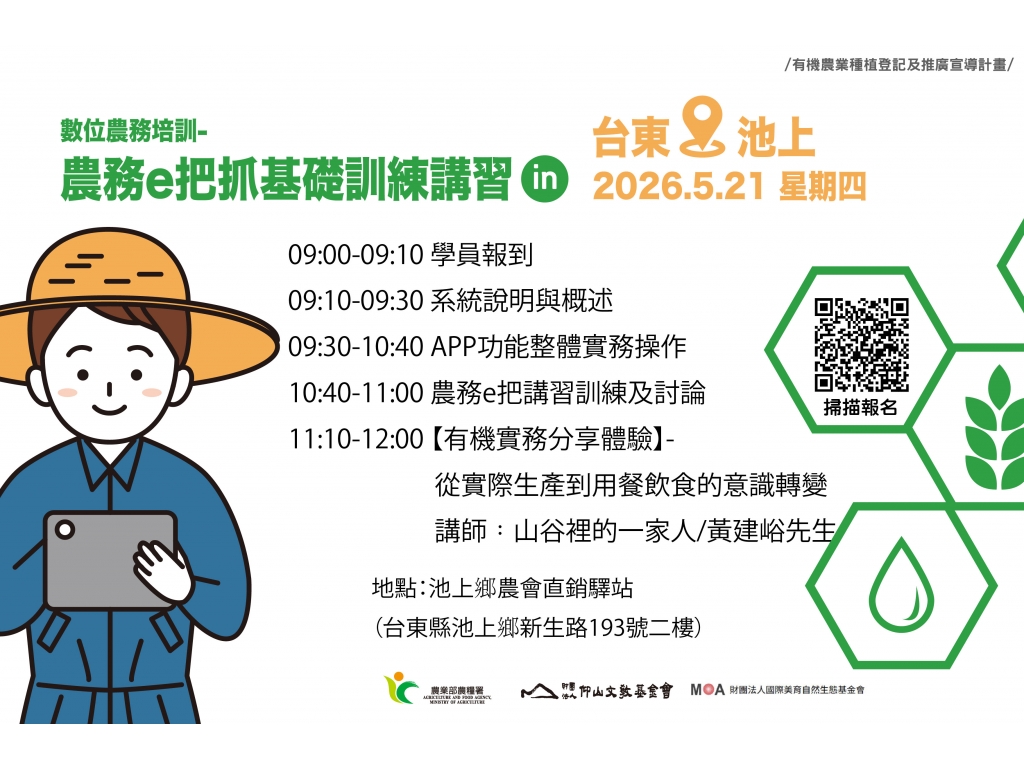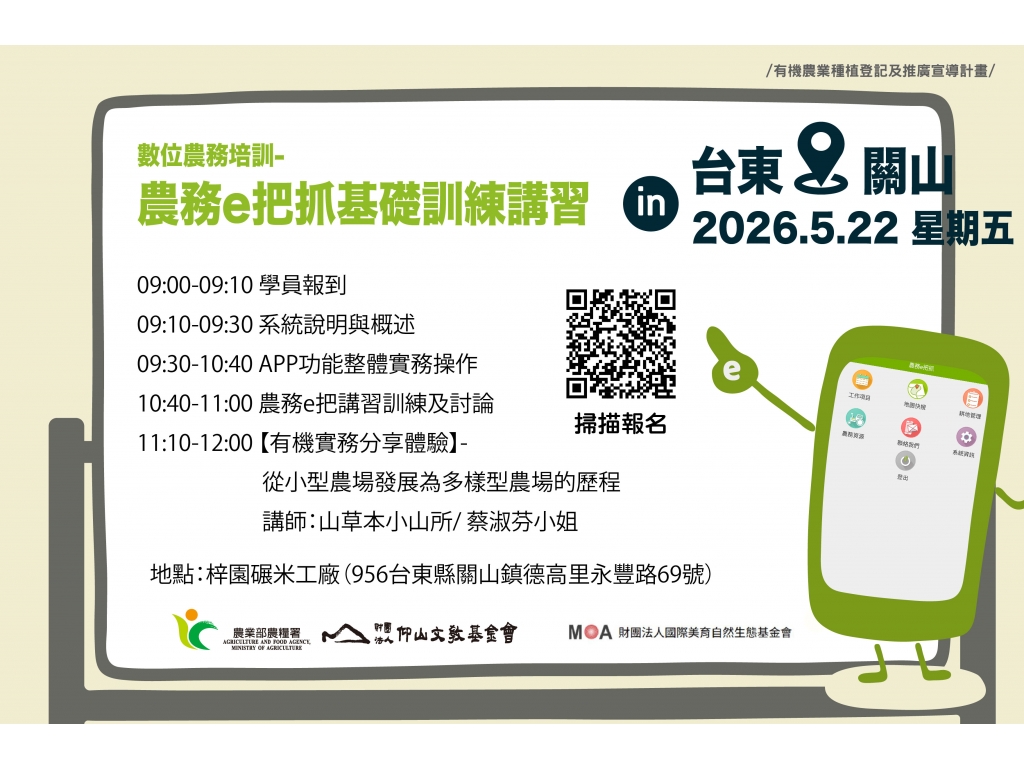 【轉知】財團法人仰山文教基金會 辦理 農務E把抓東部課程活動通知